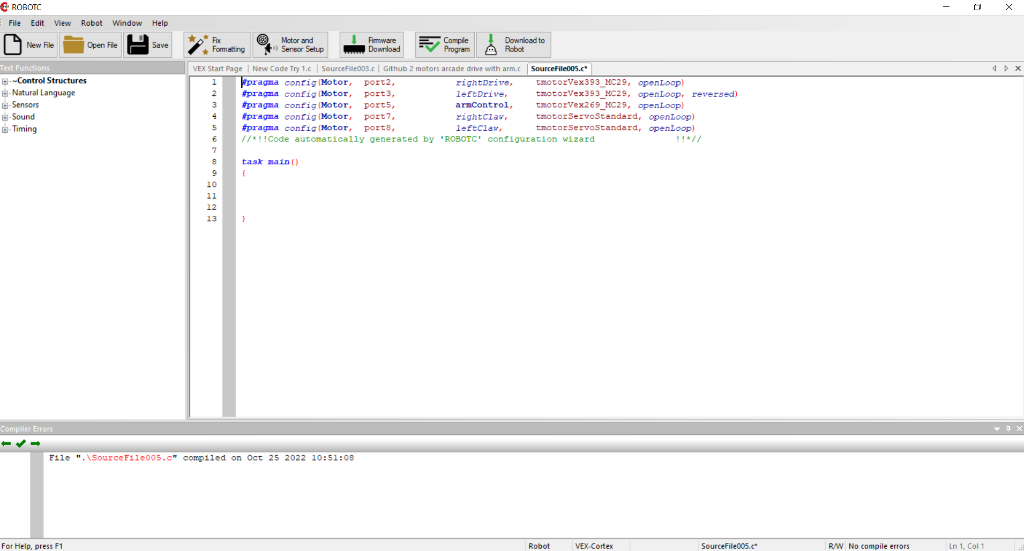 VEX EDR Intro. Configure VEX motors in RobotC programming software Very well made.