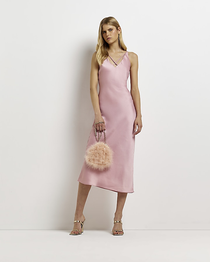 River Island Pink Slip Cowl Midi Dress Very well made.