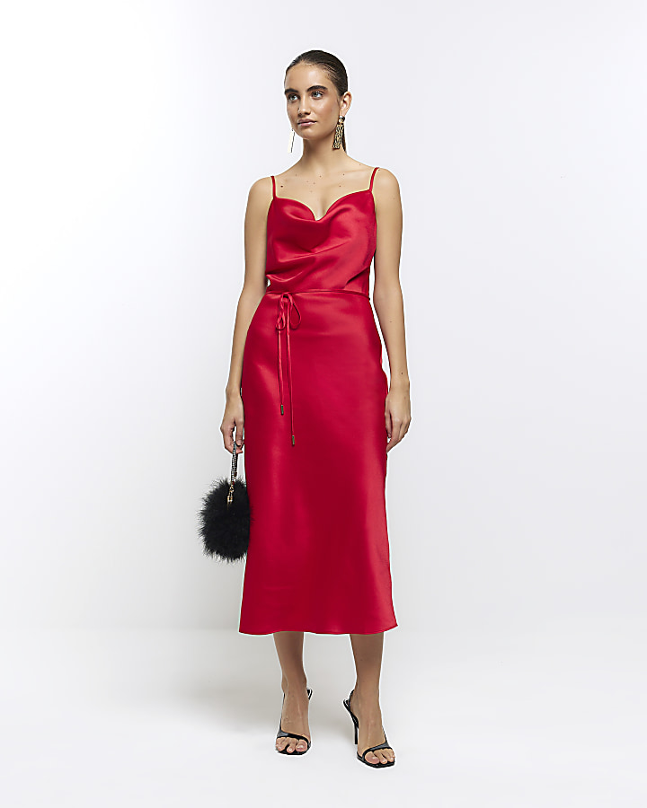 Petite Black Cowl Neck Belted Slip Dress from River Island on 21 Very well made.