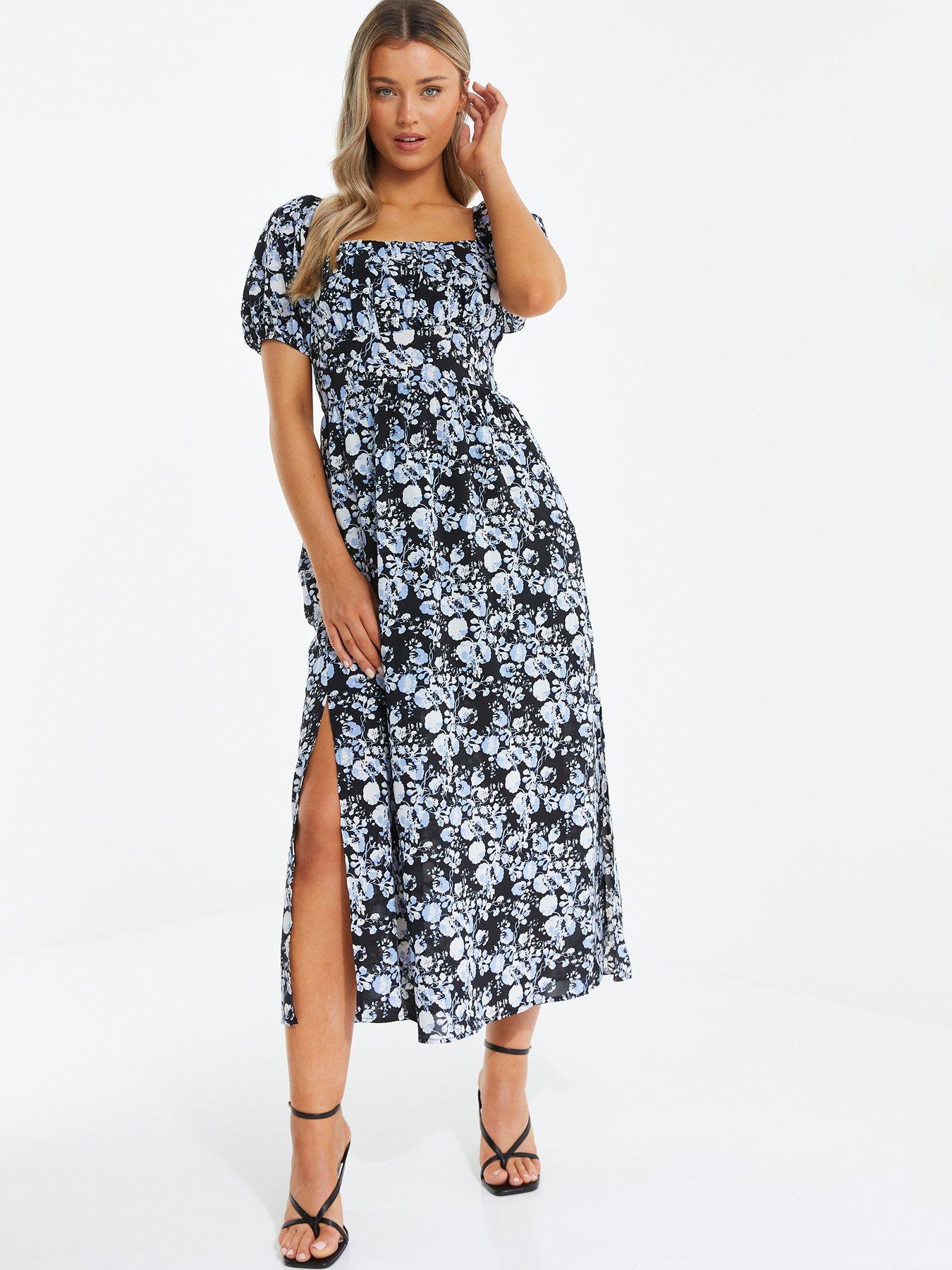 QUIZ Bright Blue Floral Split Hem Midi Dress New Look Very well made.
