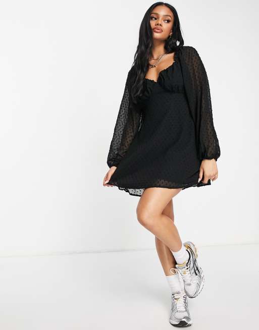 Missguided dobby milk maid mini dress with balloon sleeve in black Very well made.
