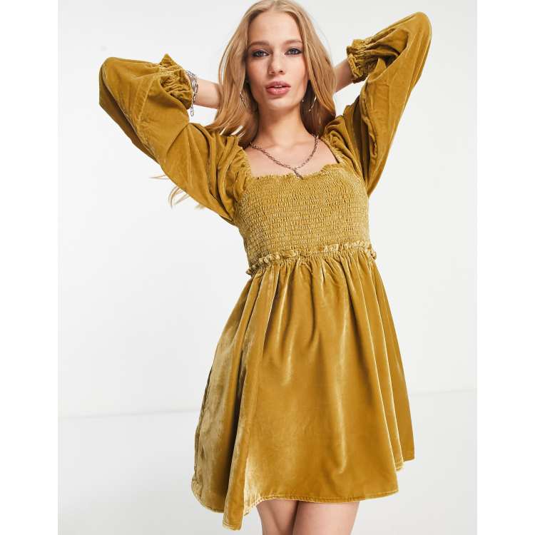 Free People Daphne velvet sleeve mini dress in olive green ASOS Very well made.