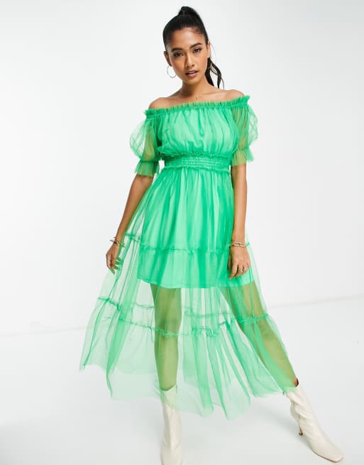 Green Pleated Tiered Bardot Midaxi Dress Gini London SilkFred Very well made.