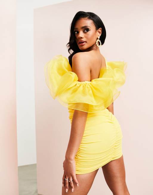 ASOS LUXE wired ruffle one shoulder ruched mini dress in yellow ASOS Very well made.