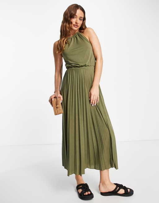 ASOS DESIGN plunge pleated tiered midi dress in sage green ASOS Very well made.
