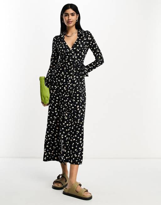 ASOS DESIGN flutter sleeve midi tea dress with buttons in black floral print Very well made.
