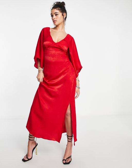 Topshop satin midi dress in red Very well made.