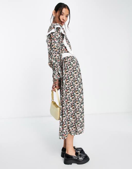 Sister Jane midi dress with oversized bib in dark floral Very well made.