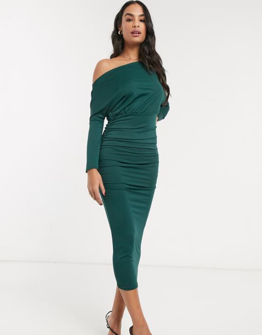 ASOS DESIGN ruched midi dress in forest green ASOS Very well made.