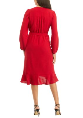 Luxology Women s Long Sleeve V Neck Solid Wrap Ruffle Hem Dress Very well made.