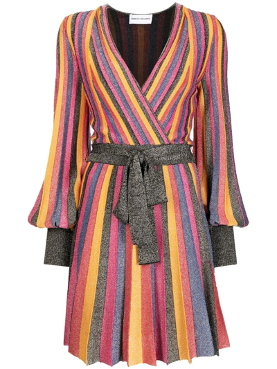 Rebecca Vallance Marsha Belted Striped Lurex Mini Dress In Very well made.