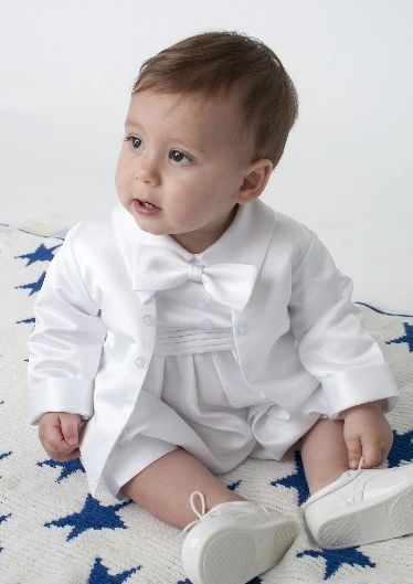 Baby Boys Theo Plain White Romper Bow Tie Jacket Christening Suit Very well made.