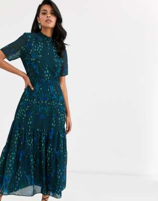 Hope Ivy high neck midaxi dress with drop hem in contrast floral and star print Very well made.
