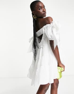 ASOS DESIGN off shoulder mini baby doll dress in white ASOS Very well made.