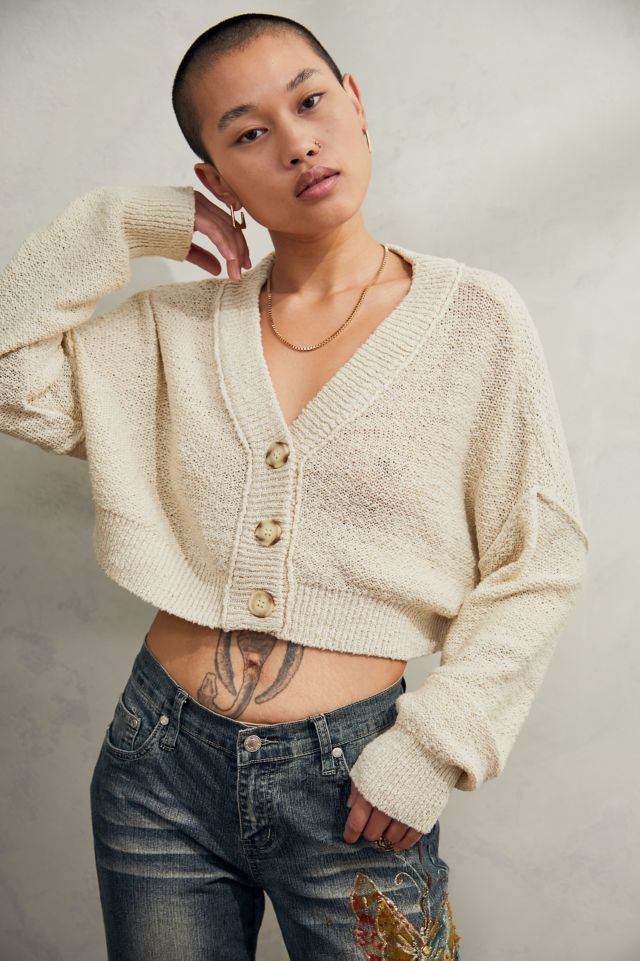 UO Skylar Ribbed Button Front Cropped Sweater Urban Outfitters Very well made.