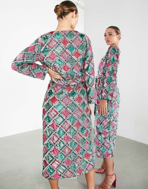 ASOS EDITION diamond belted wrap midi dress in sequin Very well made.