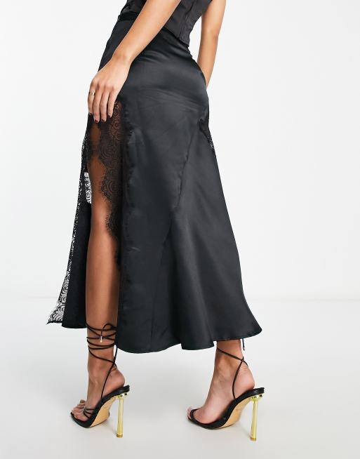 ASOS DESIGN satin midi slip skirt with lace inserts in black Very well made.