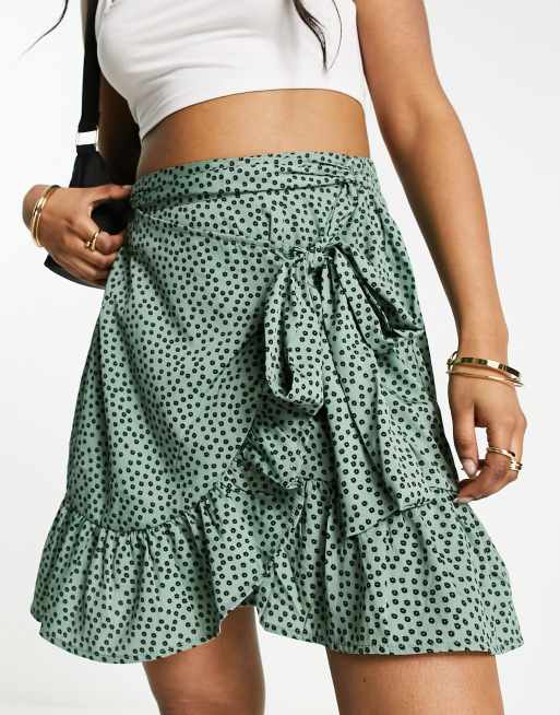 Black Spot Print Frill Hem Wrap Mini Skirt. Skirts PrettyLittleThing Very well made.