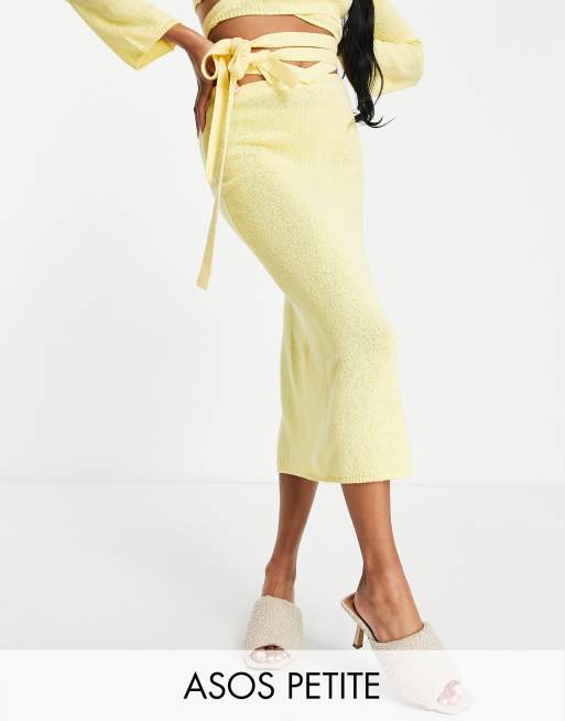 ASOS DESIGN Petite co ord knitted midi skirt with tie waist detail in yellow Very well made.