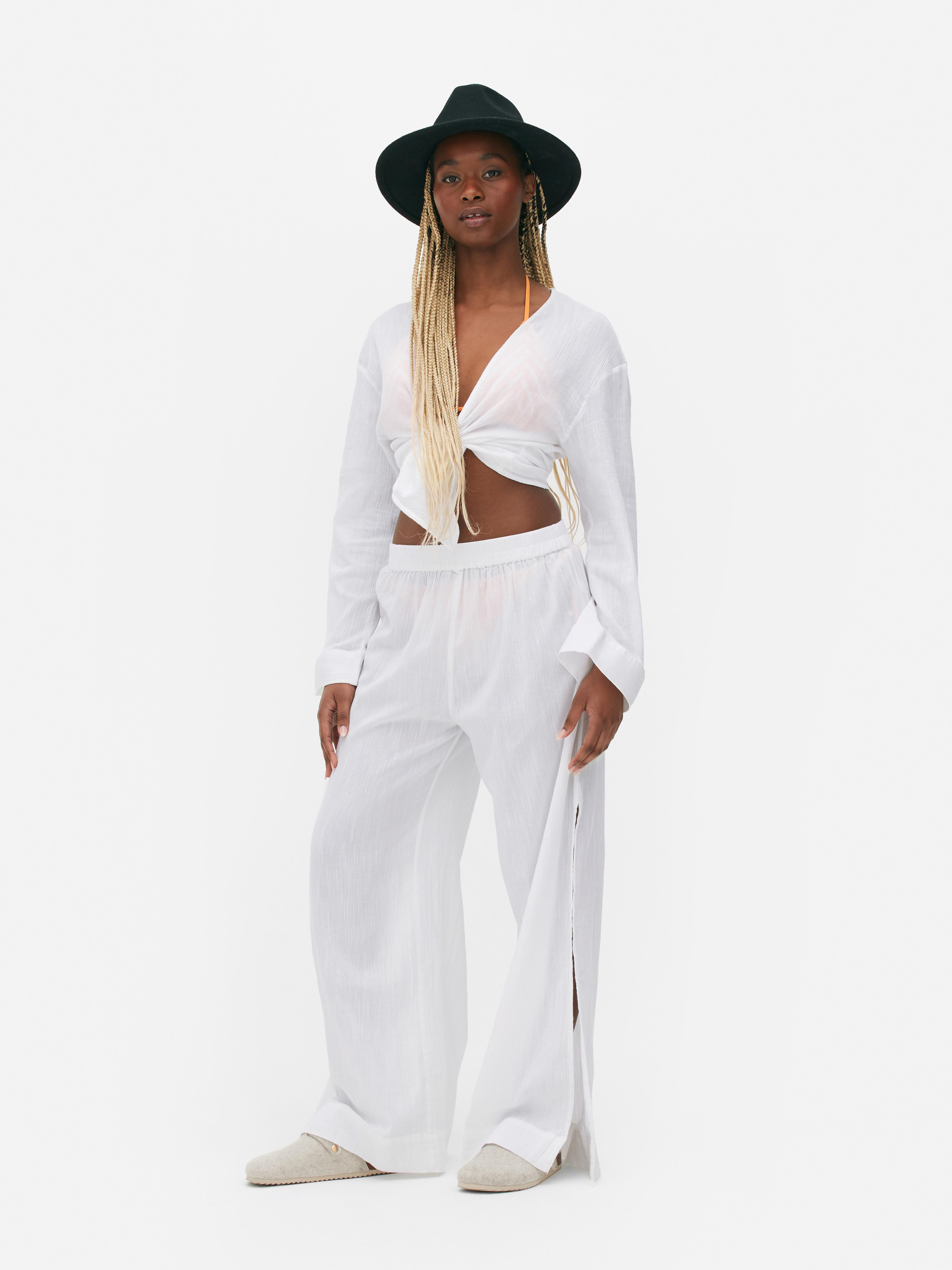 Womens White Crinkle Texture Split Side Beach Trousers Primark Very well made.