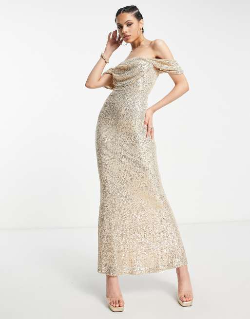 Rose Gold Sequin Cowl Neck Fishtail Maxi Dress from I Saw It First Very well made.