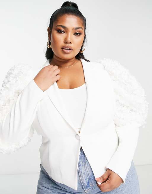 ASOS LUXE Curve co ord suit jacket with 3D floral sleeve in white Very well made.