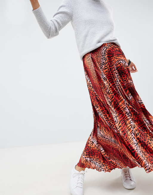 ASOS DESIGN satin pleated midi skirt in red and pink leopard print Very well made.