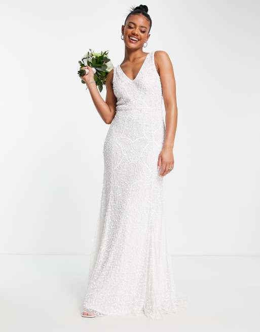 Beauut Bridal Cami Embellished Maxi Dress With Train in White Very well made.
