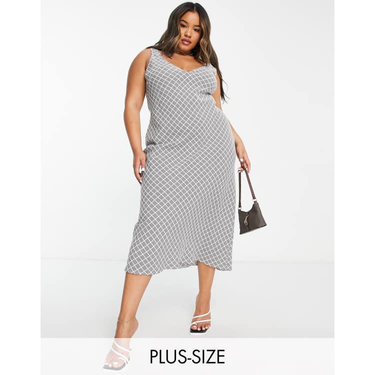 Flounce London Plus satin midi cami dress in black and white check Very well made.