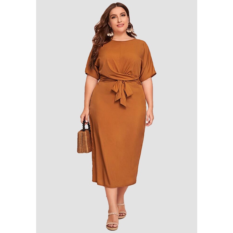 Urban Sister Bowknot Front Plain Plus Size Dress A2548 Shopee Very well made.