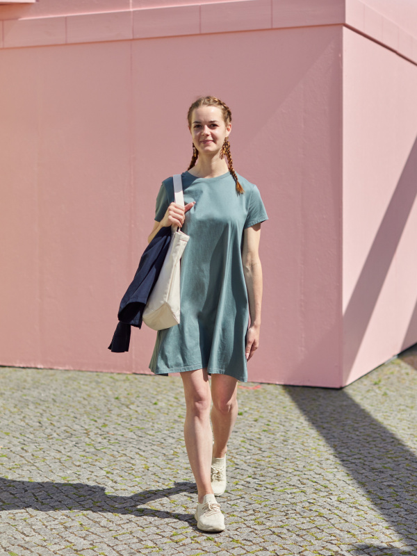 MERCERIZED COTTON SHORT SLEEVE A LINE DRESS Very well made.