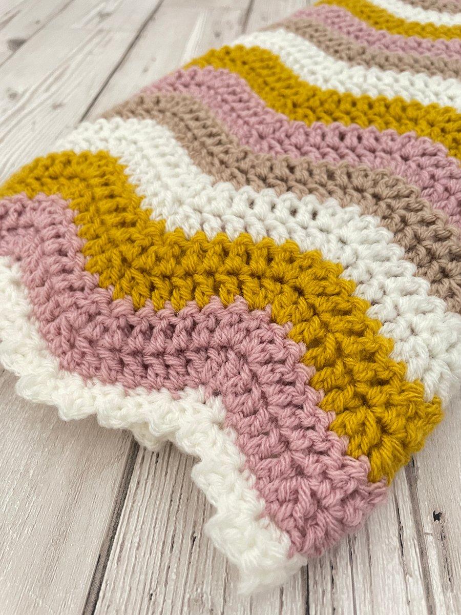 Pink and Mustard Crochet Baby Blanket Very well made.