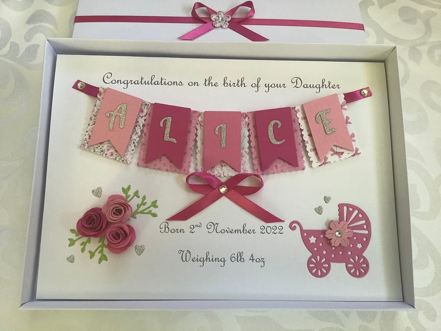 Personalised Handmade New Baby Girl Card Gift Boxed Keepsake Very well made.