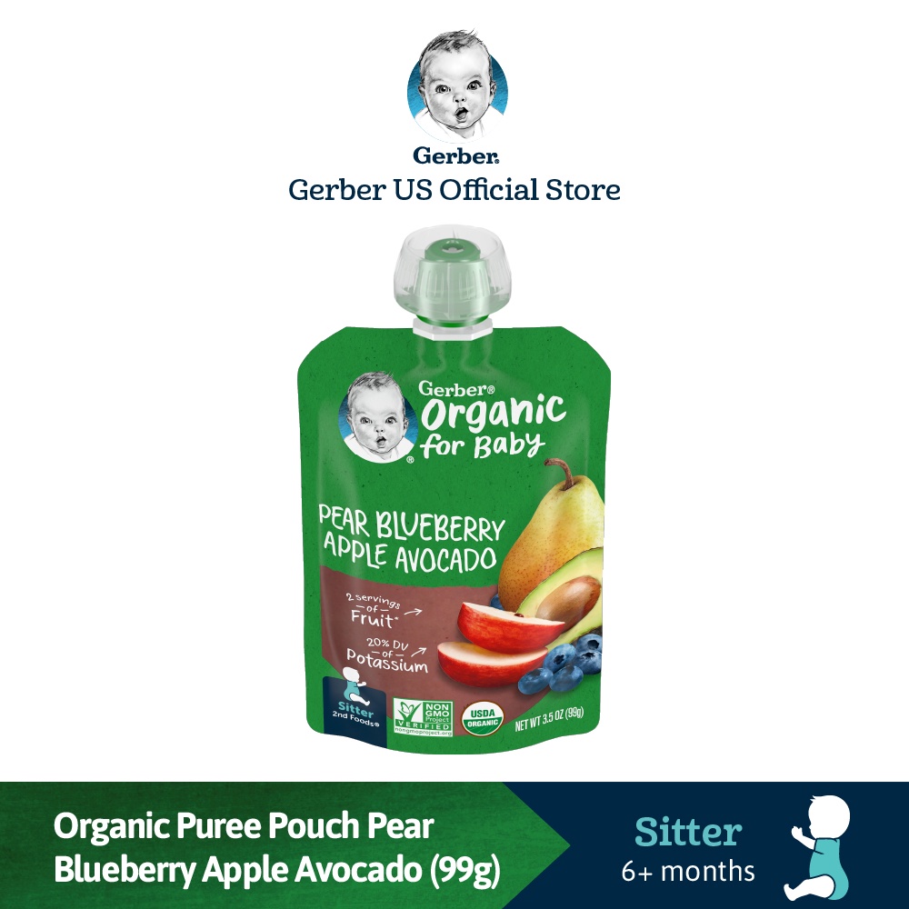 Gerber Organic Puree Pouch Pear Blueberry Apple Avocado 99g Very well made.