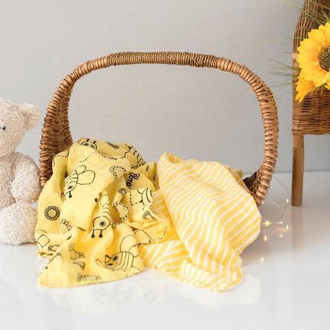 Milk Moo Buzzy Bee Baby Swaddle Blanket Oeko Tex Certified 100 Cotton Muslin Swaddle Blankets Ultra Soft Breathable Lightweight Set of 2 Muslin Very well made.