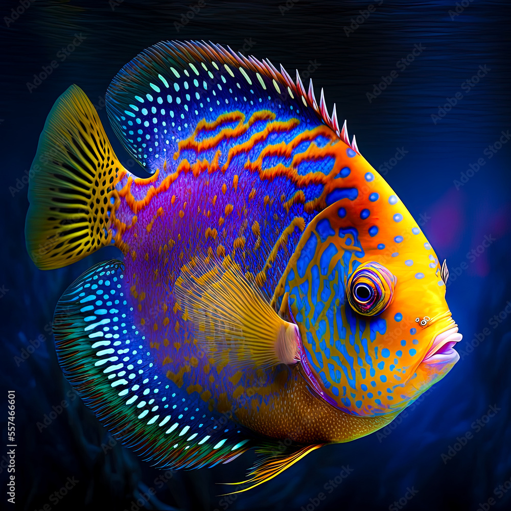 beautiful colorful tropical fish generative ai Stock Illustration Very well made.