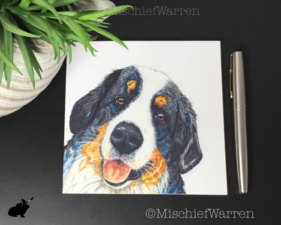 Bernese dog art card. Blank or personalised for any occasion Very well made.
