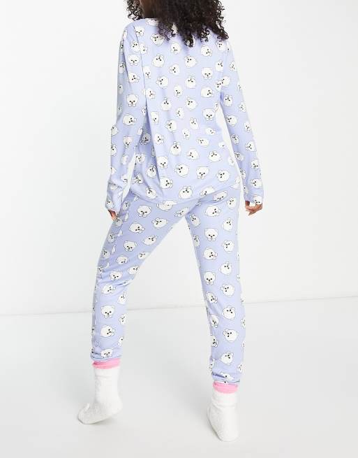 Chelsea Peers long pyjama and cosy socks set in lilac and white Very well made.