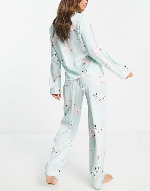 ASOS DESIGN satin dog print shirt pants pyjama set in sage Very well made.