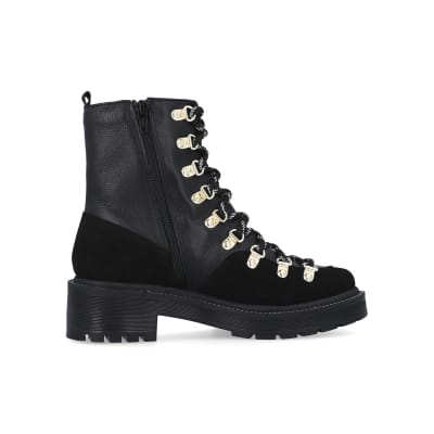 Black Cleated Sole Hiker Eyelet Ankle Boot Very well made.