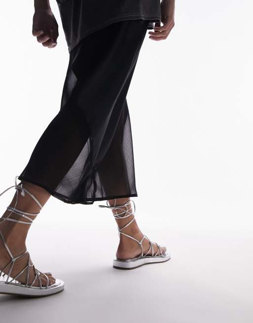 Topshop Gina strappy flat sandal with ankle tie in silver ASOS Very well made.