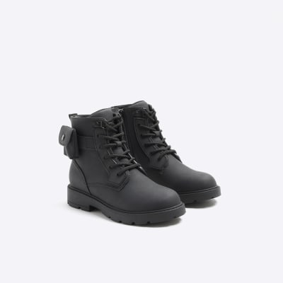 Childrens Kids Boys Slip On Lace Up PU High Top Boots Shoes Very well made.