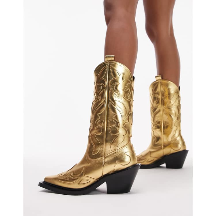 Topshop Belle premium leather hand stitched western boot in gold Very well made.