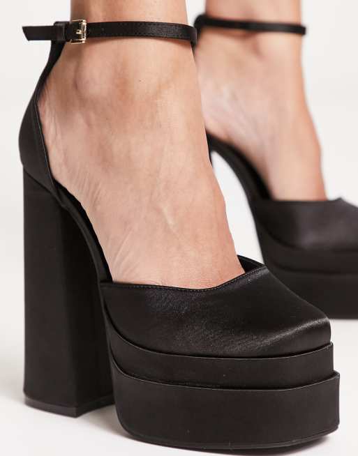 Truffle Collection Wide Fit double platform heeled shoes in black satin Very well made.