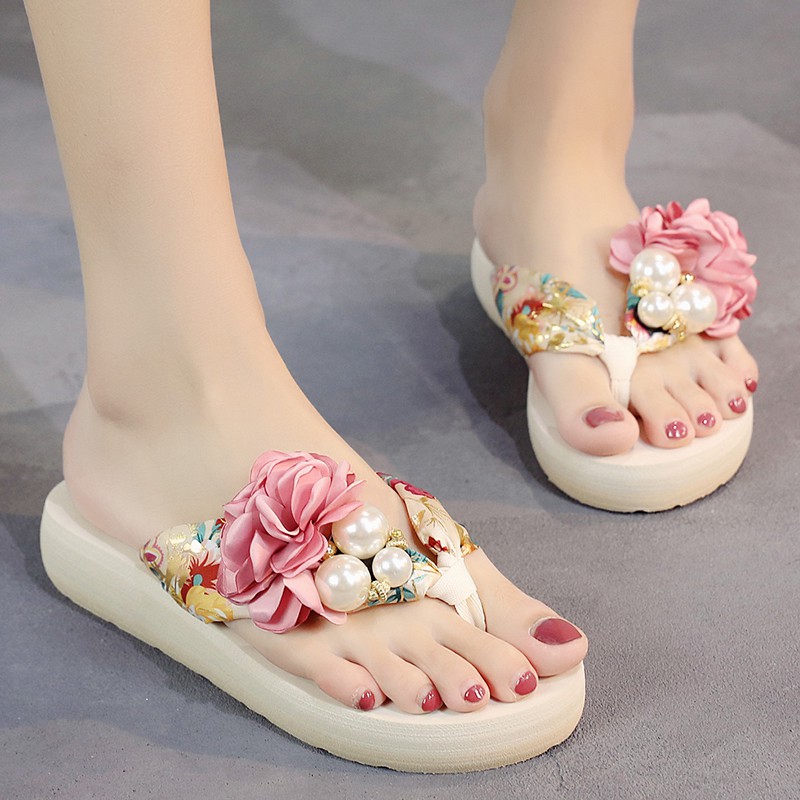 Women Thick Heel Flower Flip flops Size 36 42 Ins Korean Fashion Platform Casual Slippers Outdoor Nonslip Slippers Very well made.