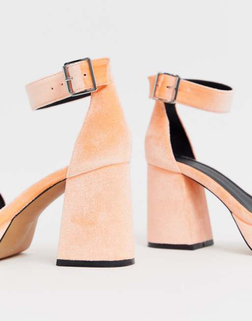 ASOS DESIGN Wide Fit Witty chunky platform block heels in peach Very well made.