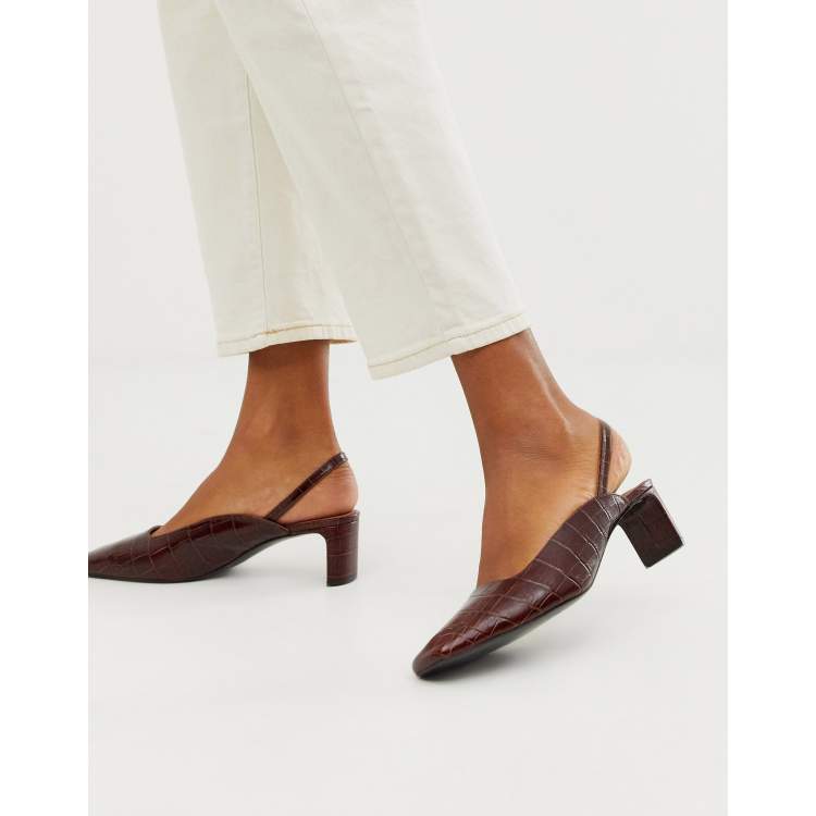 Other Stories croc print square toe kitten heel sling back shoes in brown Very well made.