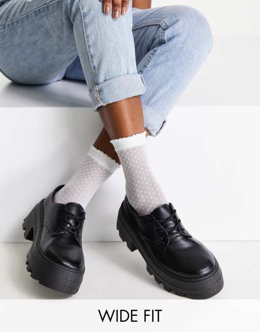 ASOS DESIGN Wide Fit Midnight chunky lace up flat shoes in black Very well made.