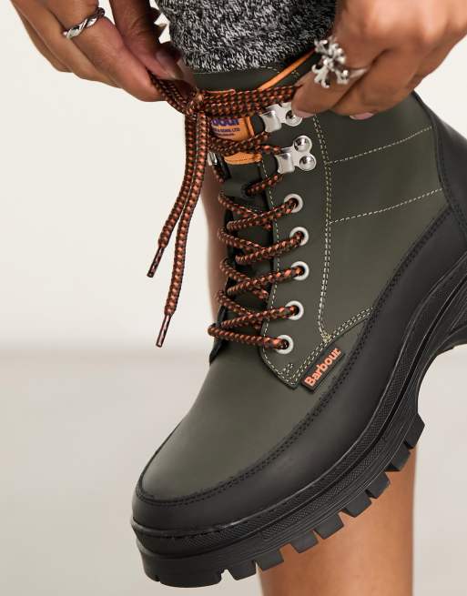 Barbour x ASOS exclusive hiker boots in olive Very well made.