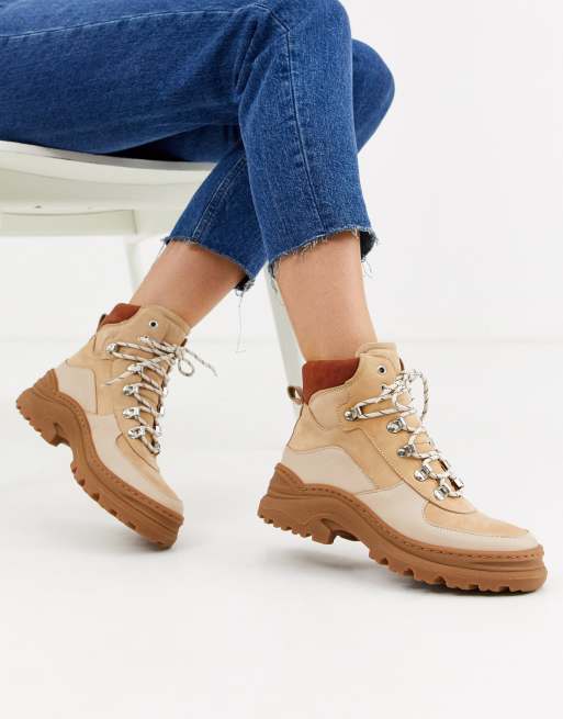ASOS DESIGN Adrift chunky lace up hiker boots in black Very well made.